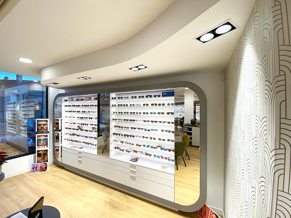 ✔ Un mobilier sur-mesure intégrant une optimisation du rangement pour exposer un maximum de montures sans compromettre le design